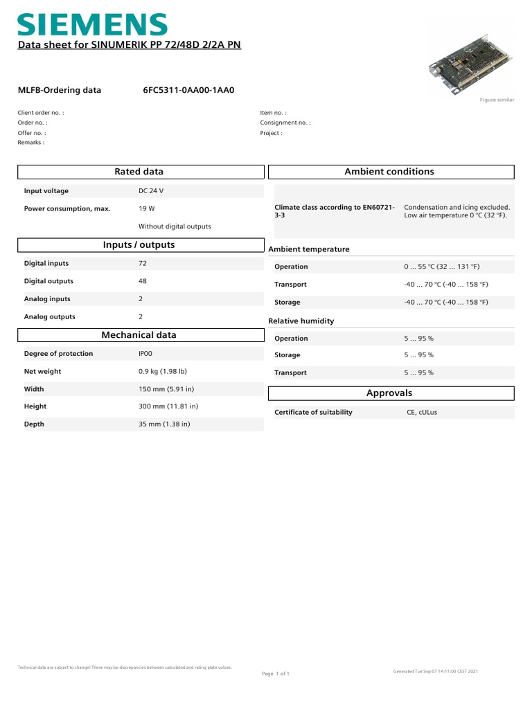 6FC53110AA000AA0 SIEMENS SINUMERIK I/O Module 6FC53110AA000AA0 Sinumerik I/O Module Pp 72/48 Sinumerik 802d sl control unit pdf manual download. the i/o module is a simple module (without a separate enclosure) for connecting digital and analog input/outputs as part of an. the pp 72/48d 2/2a pn i/o module has certified profinet interfaces, however their functionality cannot be fully exhausted within the scope of the. view and download siemens sinumerik. Sinumerik I/O Module Pp 72/48.
